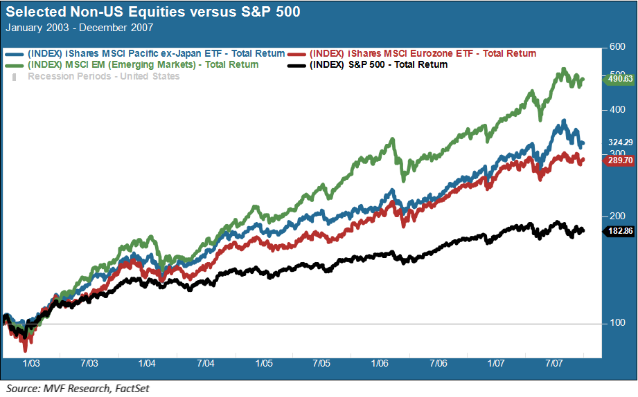 Read More From MVThe rotation out of US equities is into its second year and going strong. The rest of the world may be having its share of problems, but underperforming stocks is not one of them. Here is a brief snapshot of how things are going in other parts of the globe, relative to the flattish ways of the S&P 500 thus far. This got us to thinking about the last time non-US equities gripped the imagination and enthusiasm of the investing crowd. Let’s take a little trip back to the quaint world of this century’s first decade. Swan Song for the...